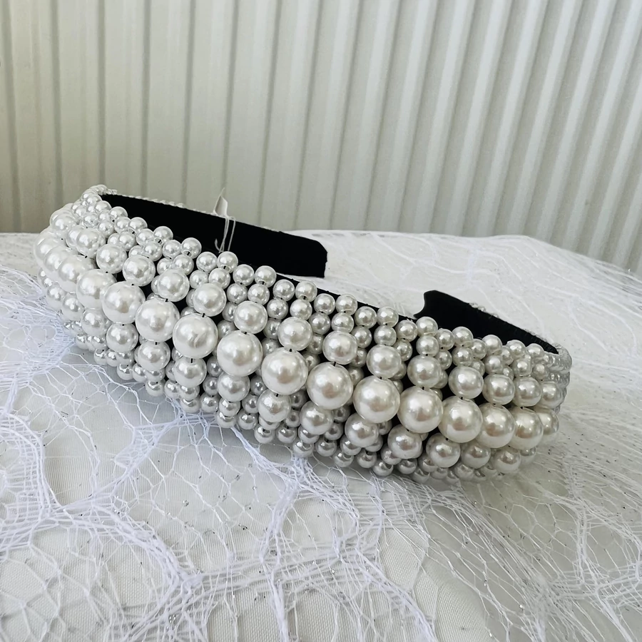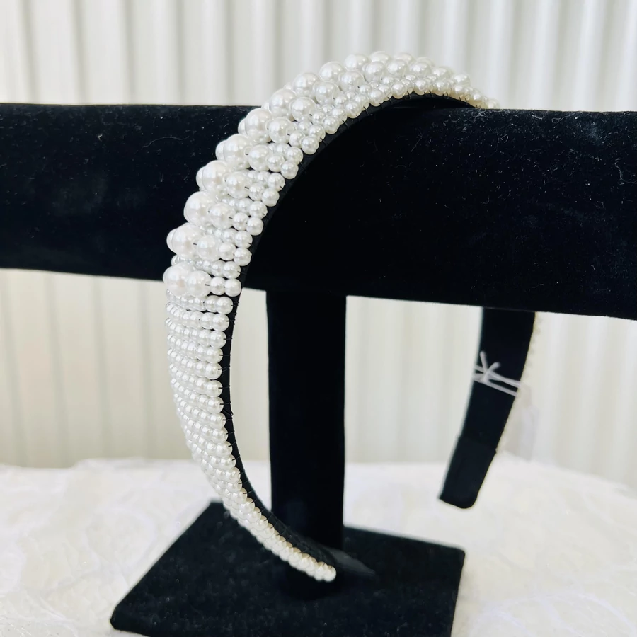 Elegáns fehér gyöngyből kirakott hajráf. Ideális viselet alkalomra vagy akár a hétköznapokra.